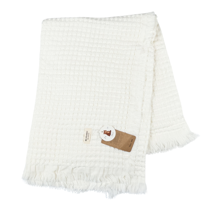 Păturică Moale din Muselină pentru Nou-Născuți – Alb – Textură Gofre/Waffle