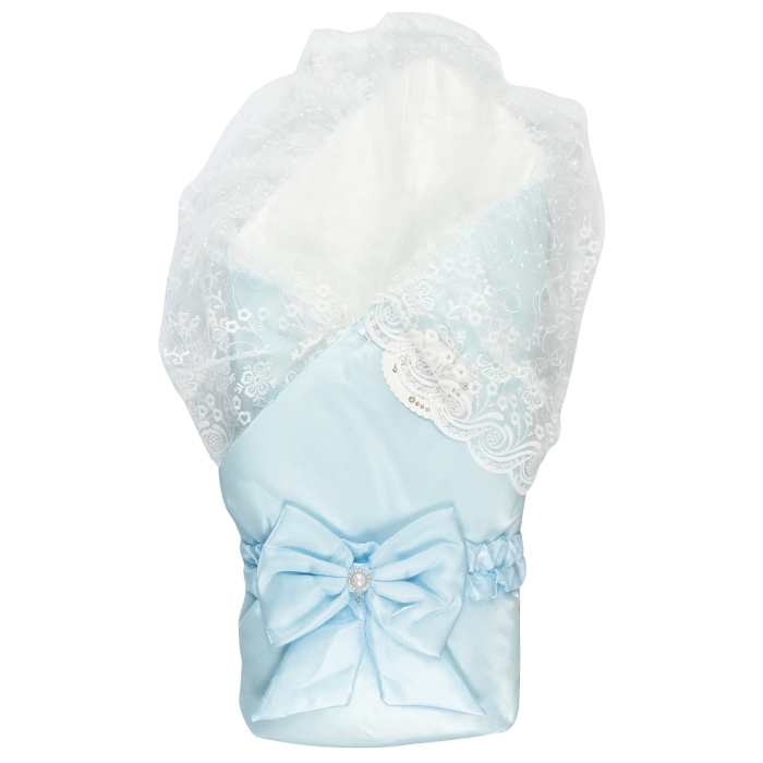 Port-bebe Elegant cu Volănașe din Dantelă și Fundă cu Perle, pentru Botez sau Ieșire din Spital