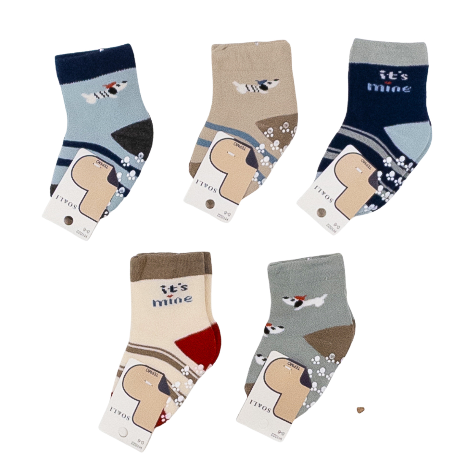 Sosete flausate interior cu talpica antiderapanta pentru bebelusi, set din 5 perechi