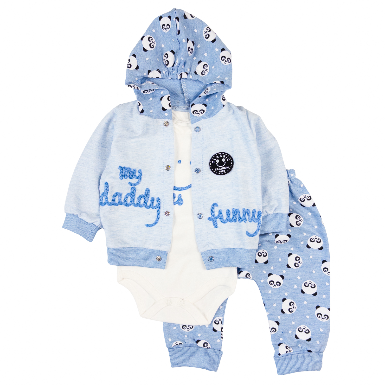 Compleu pentru bebelusi, 3 piese, model Panda, Albastru