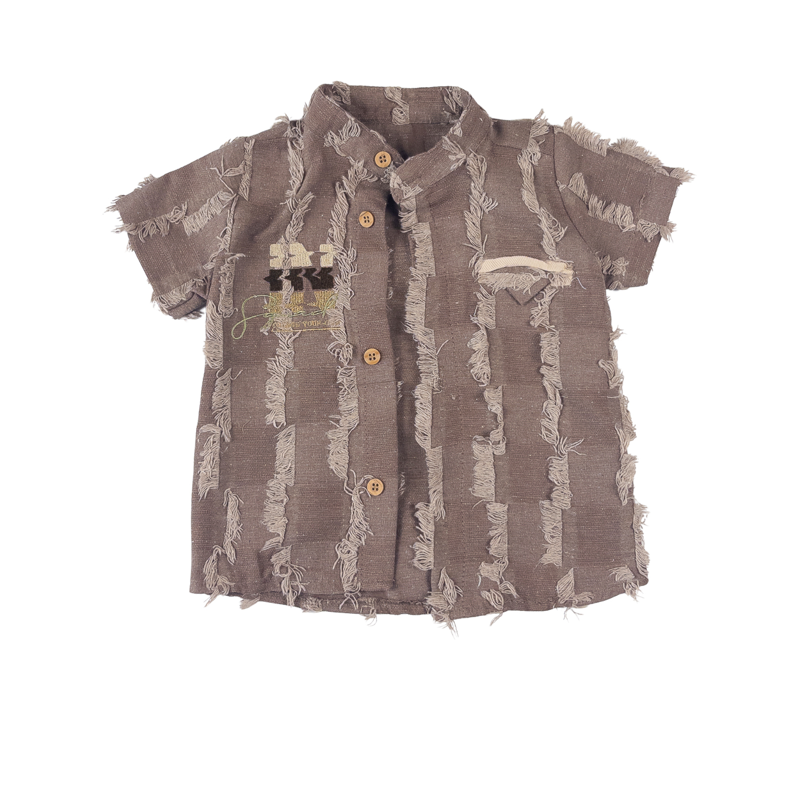 Costumaș Modern Băieți 3 Piese, Design cu Franjuri, Maro/Bej