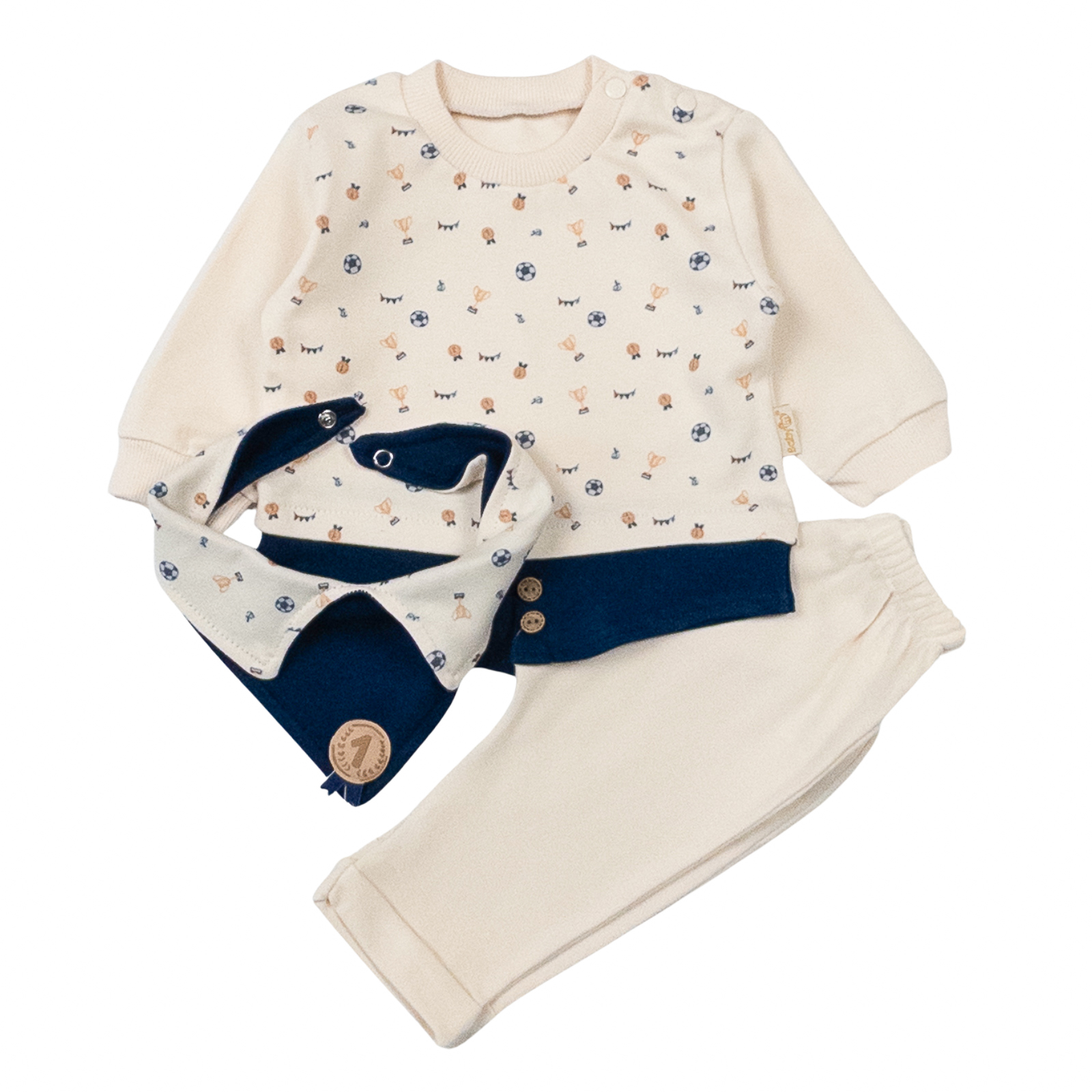 Set format din Bluza, Pantaloni și Bavețică, model Micul Campion