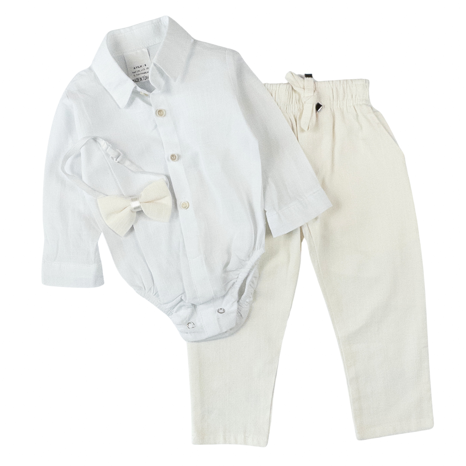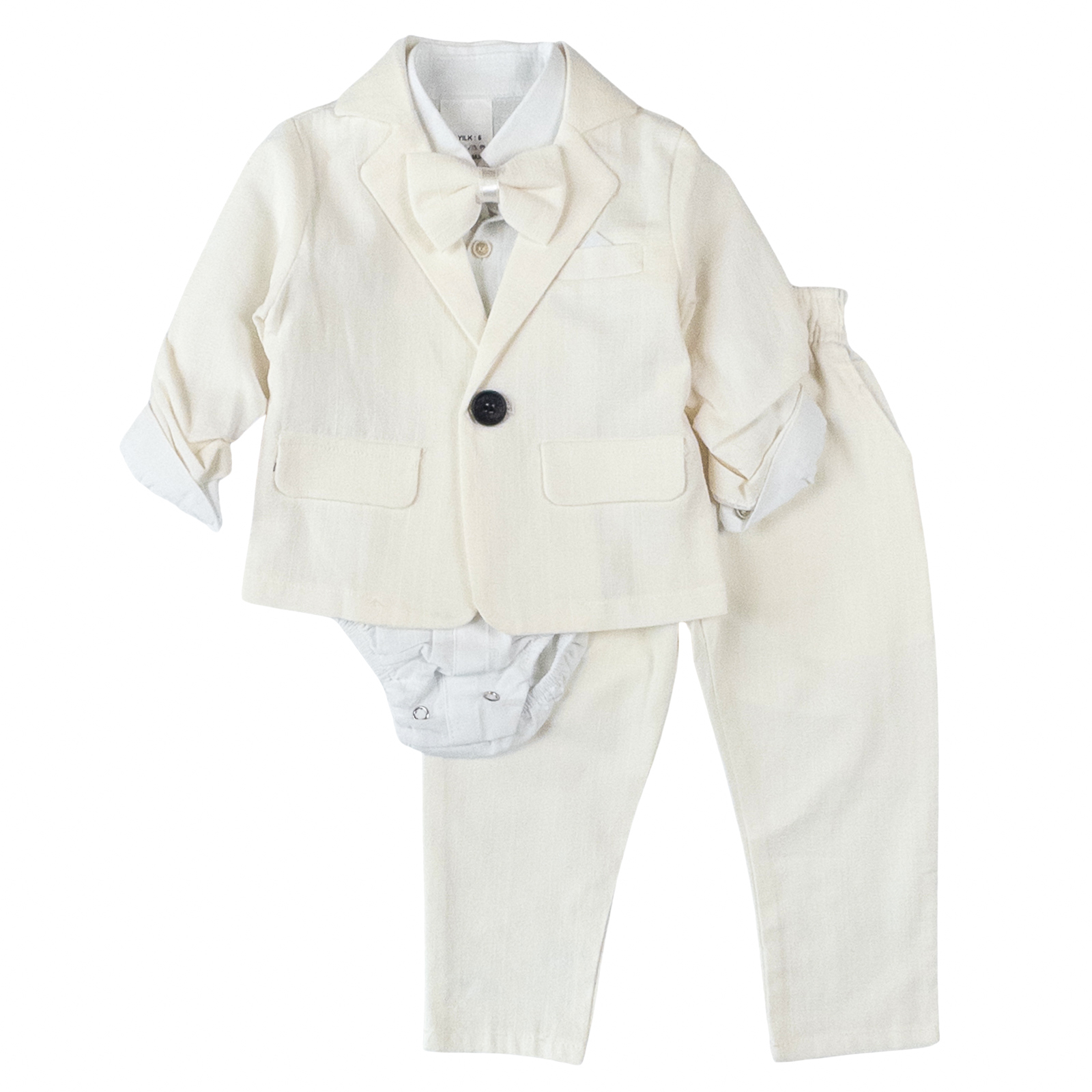 Costumas pentru bebelusi format din sacou, Body cu papion detasabil si pantalonasi asortati