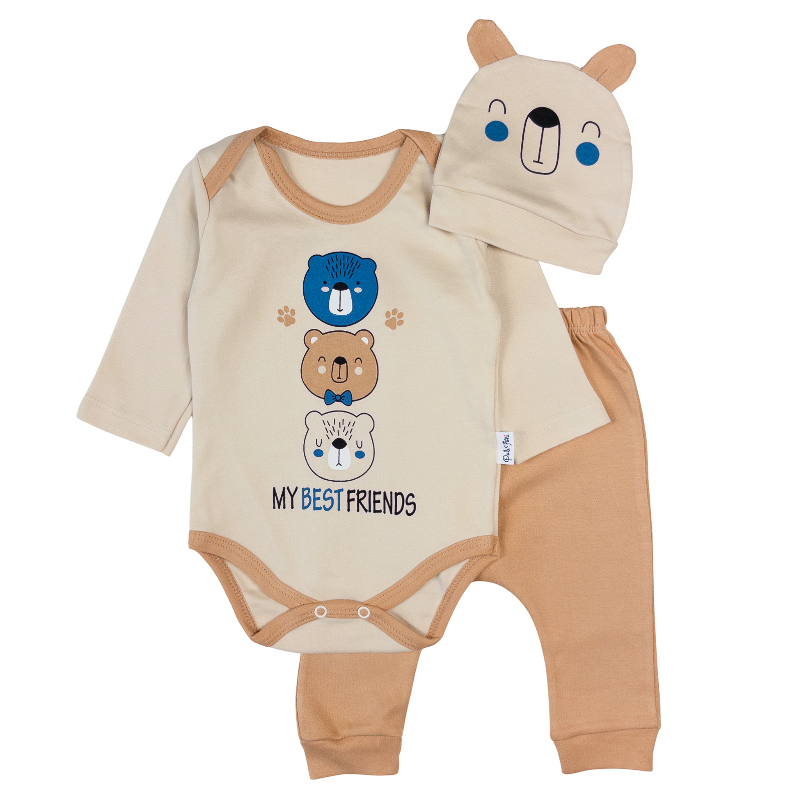 Compleu 3 piese pentru bebelusi, model Ursuleti, maro deschis