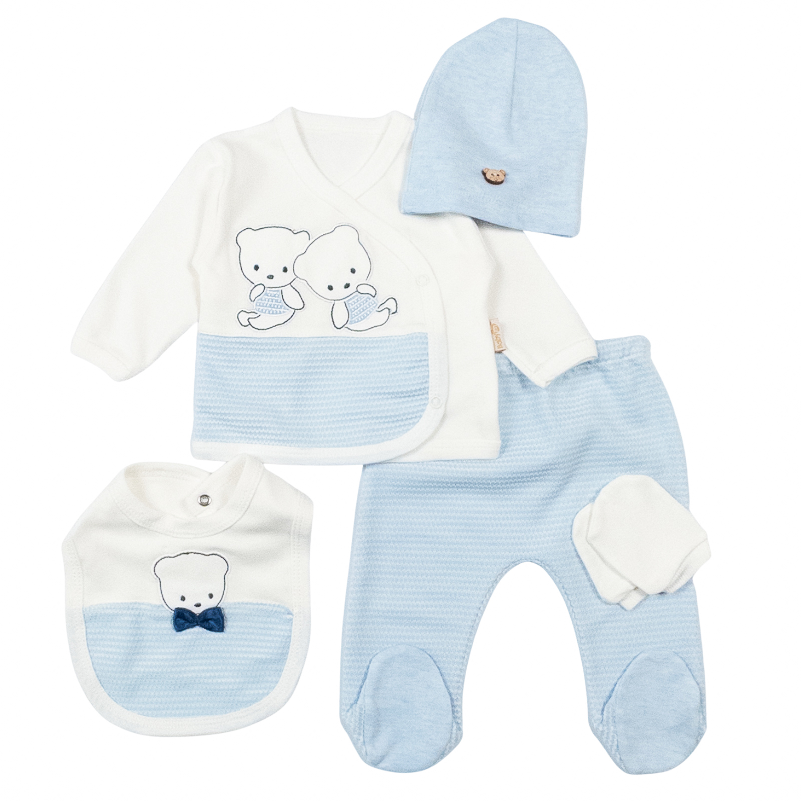 Set 5 piese pentru nou nascuti, model cu Ursuleti, albastru deschis