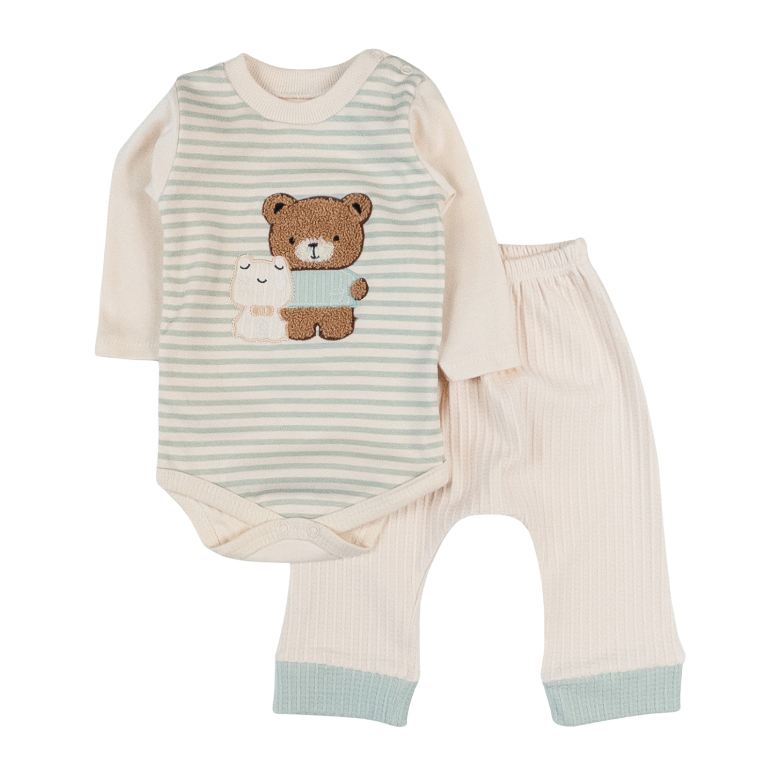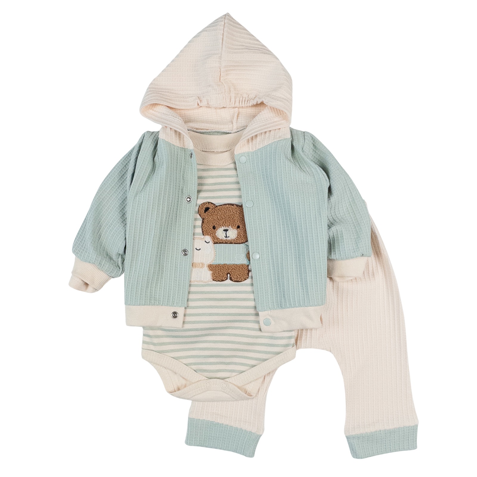 Compleu pentru bebelusi, 3 piese, model Ursulet, turcoaz