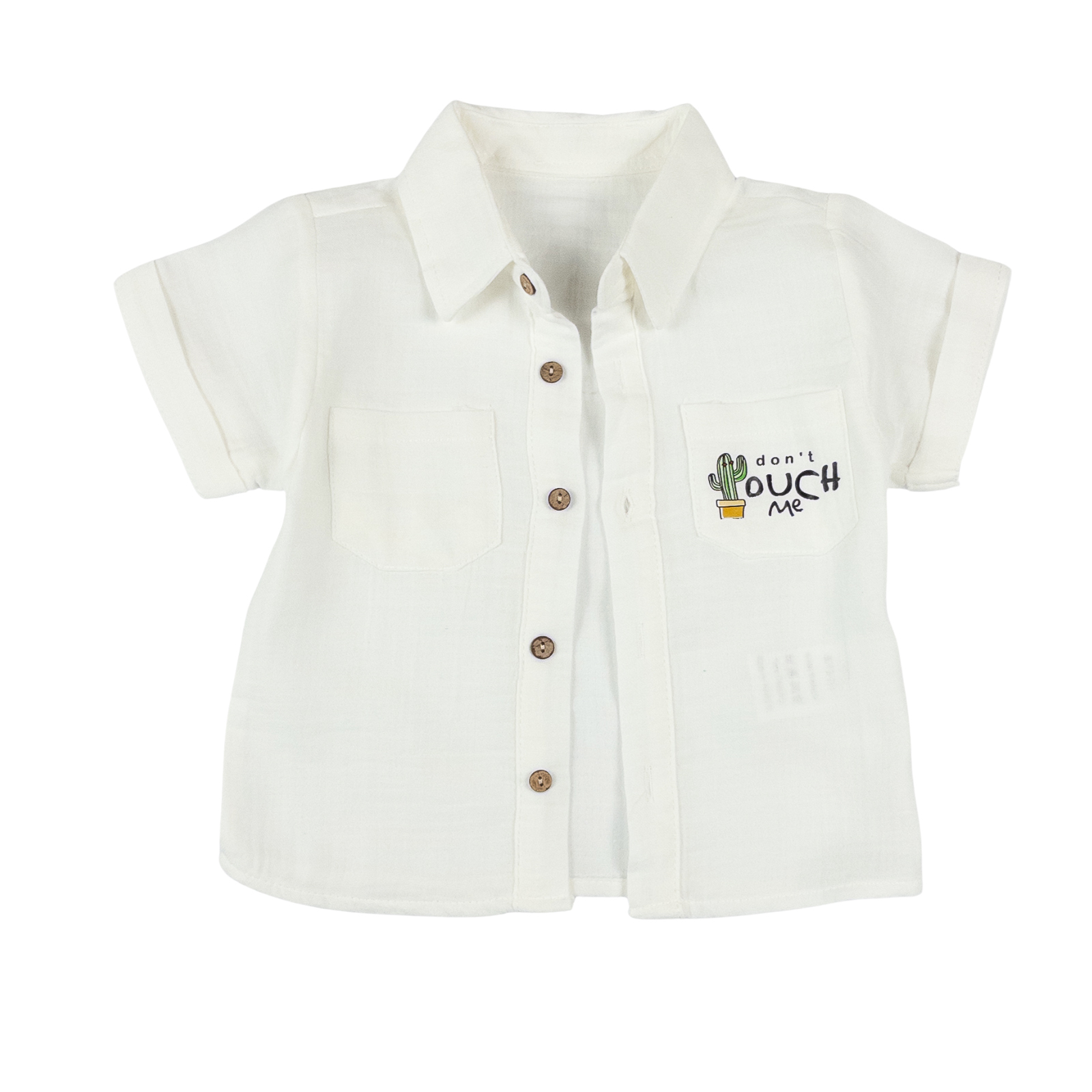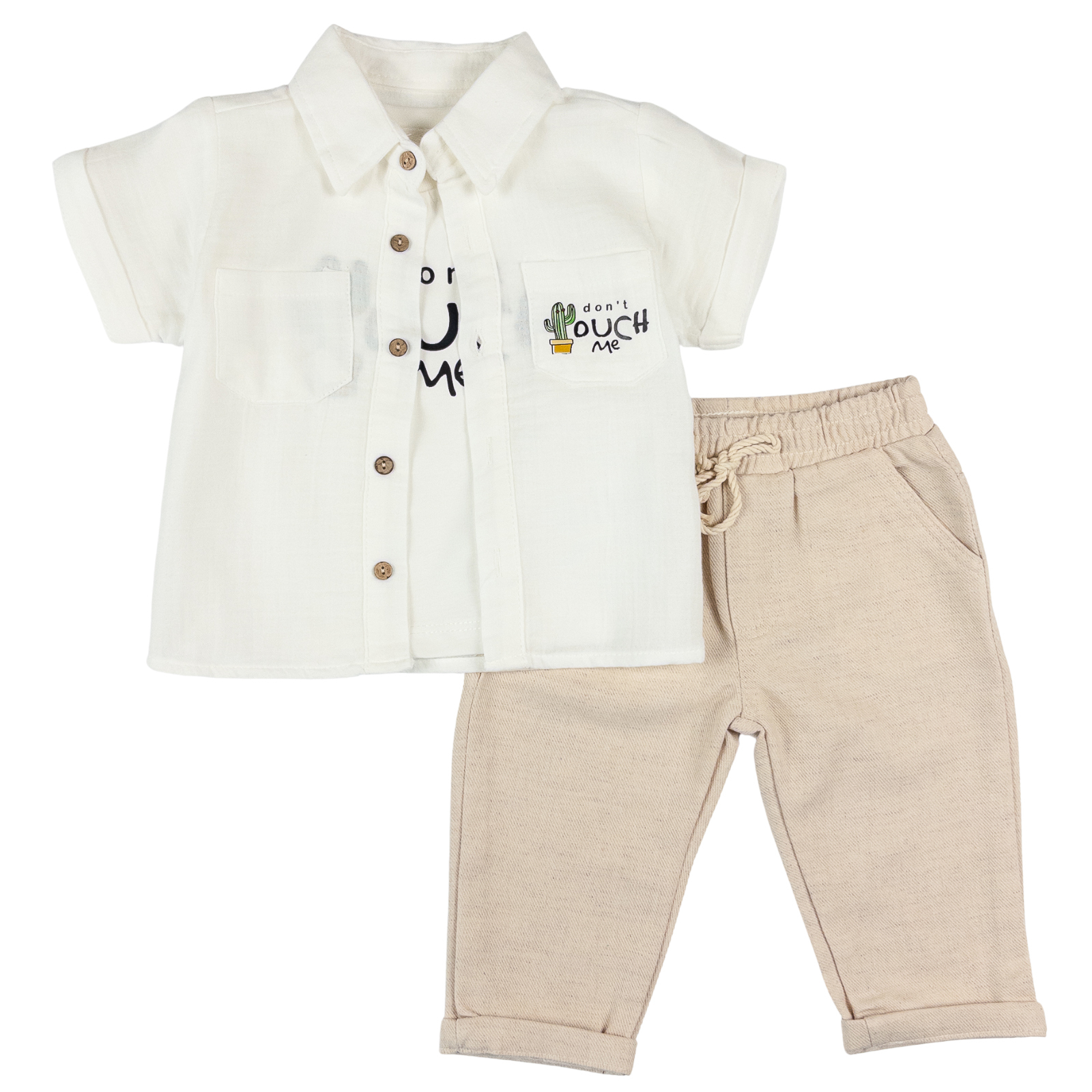 Costumaș 3 Piese Băieți, Cămașă Albă Cactus și Pantaloni Lungi Bej