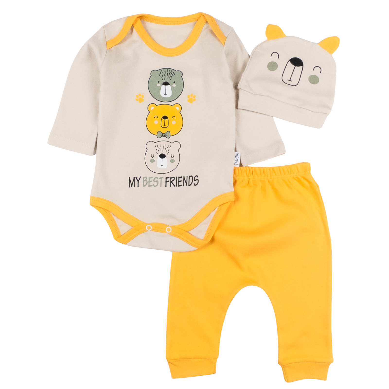 Compleu 3 piese pentru bebelusi, model Ursuleti Galben