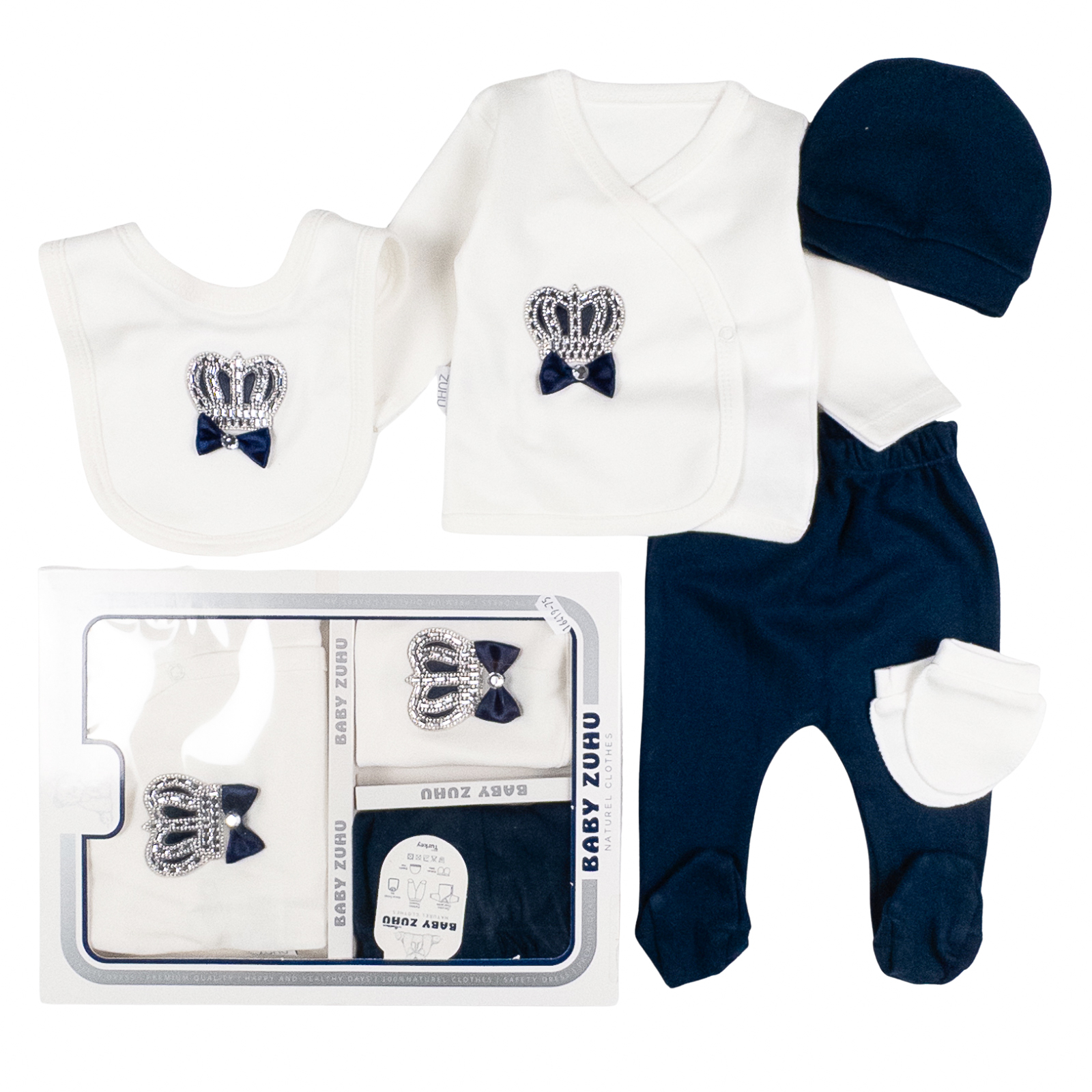 Setul contine: Bluzita, Pantalonas cu totosei, Bavetica, Caciulita si Manusele