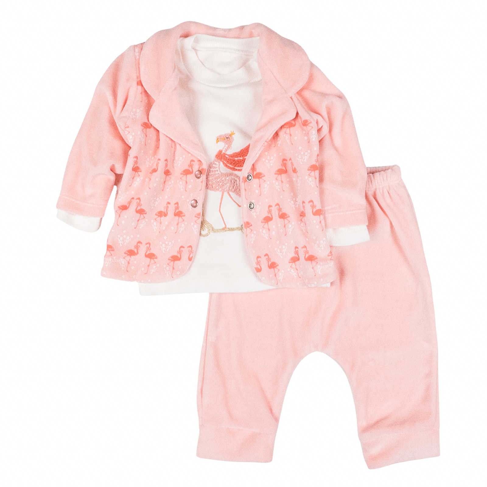 Compleu catifelat pentru fetite, 3 piese, model Egreta