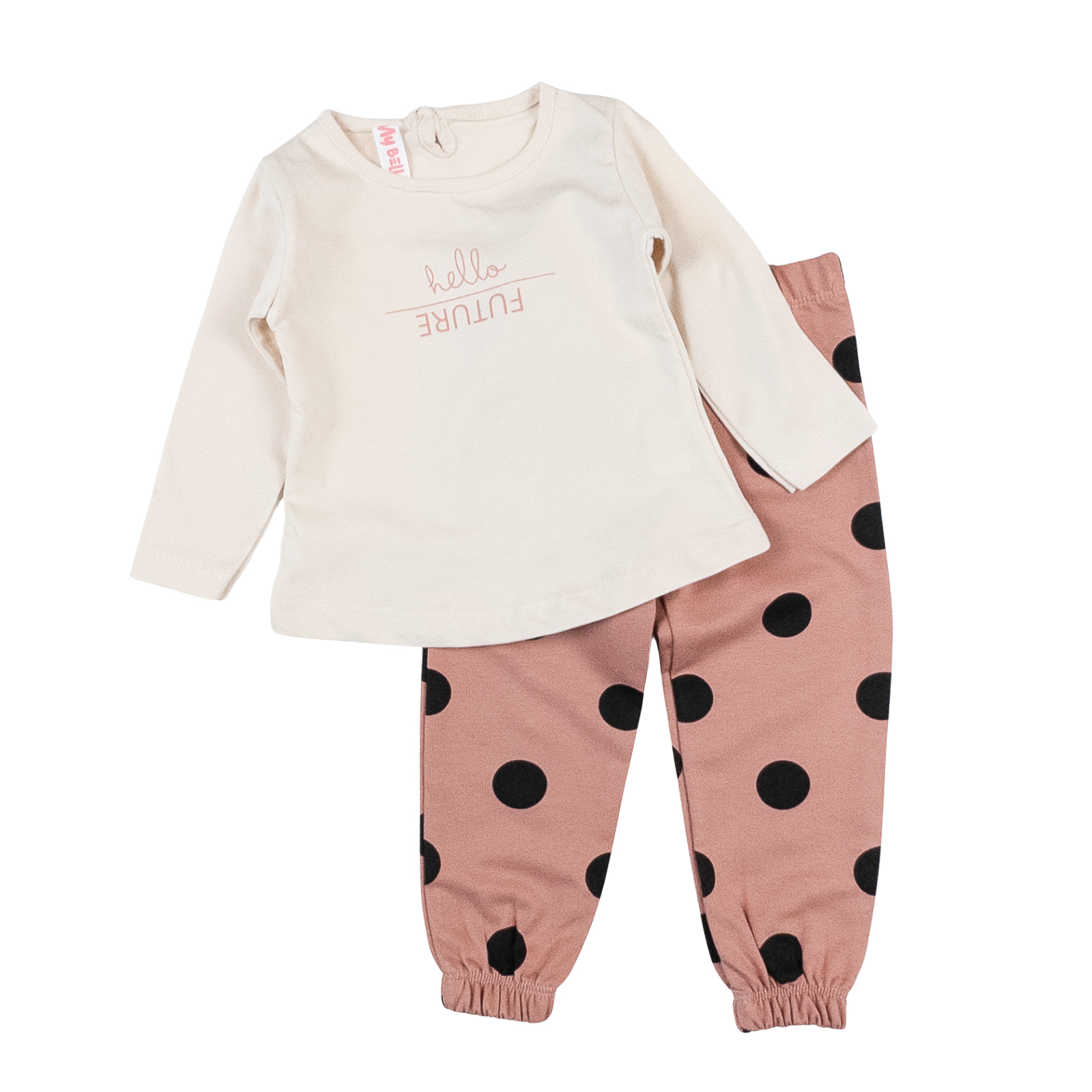 Compleu pentru bebelusi format din Hanorac, bluzita si pantalonasi, model Bulinute
