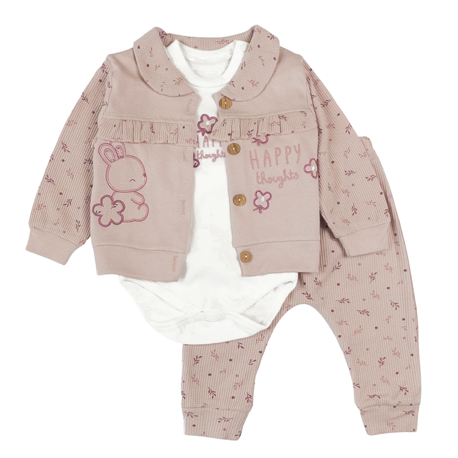 Compleu pentru bebelusi format din Cardigan, body si pantalonasi, model Iepuras