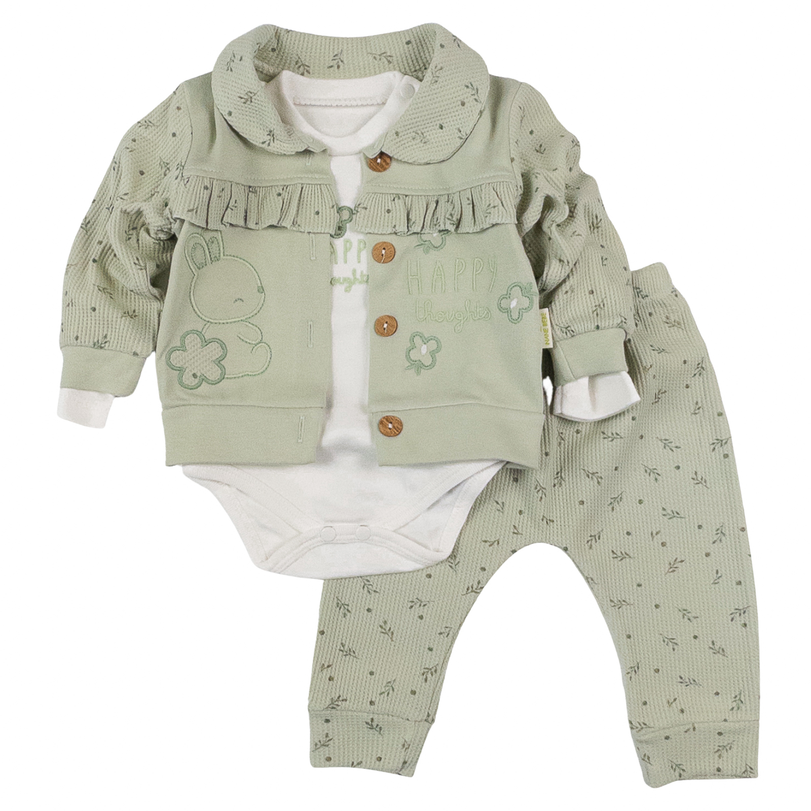 Compleu pentru bebelusi format din Bluza, body si pantalonasi, model  Iepuras