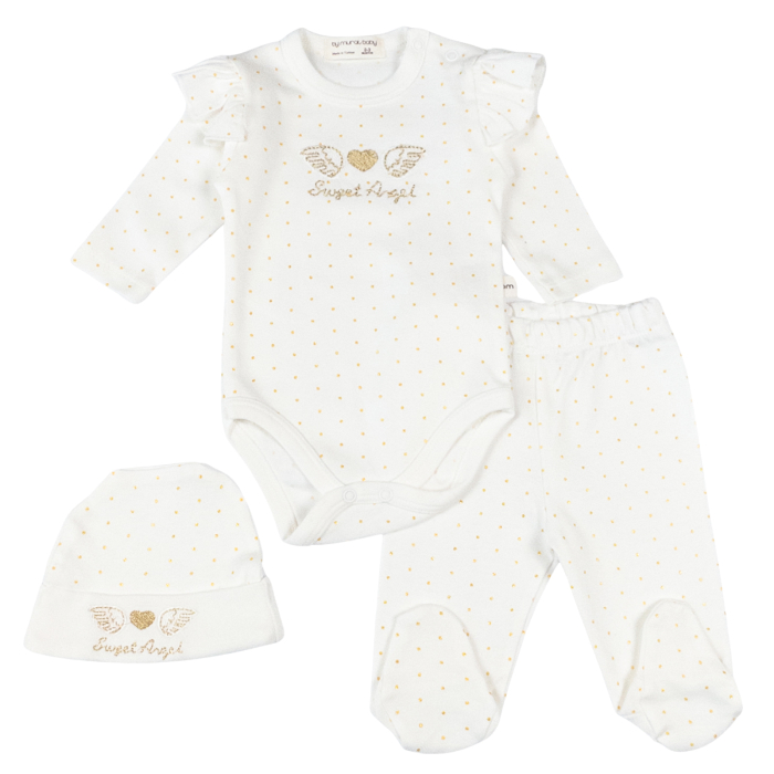 Set din 3 piese pentru bebelusi model cu Ingerasi