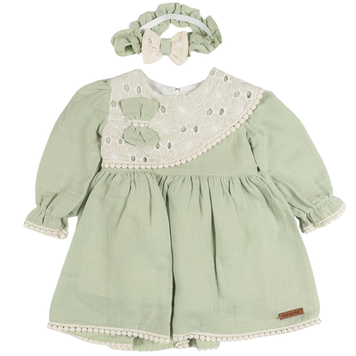 Rochiță si bentita pentru Bebelusi, Guler Dantelă Brodată, strat de tull fin pentru un plus de volum și eleganță.