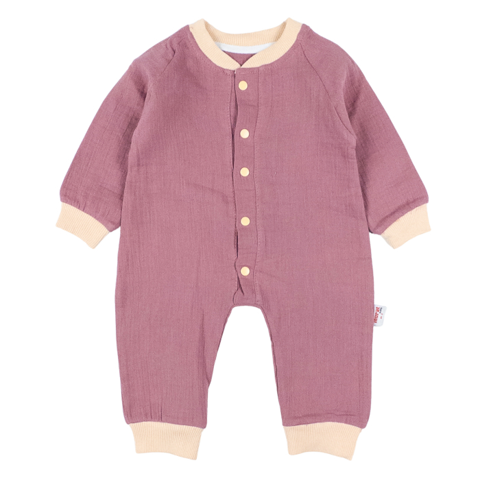 Salopetă Bebeluşi din Muselină Moale, Model Unisex, Culoare Roz Prăfuit