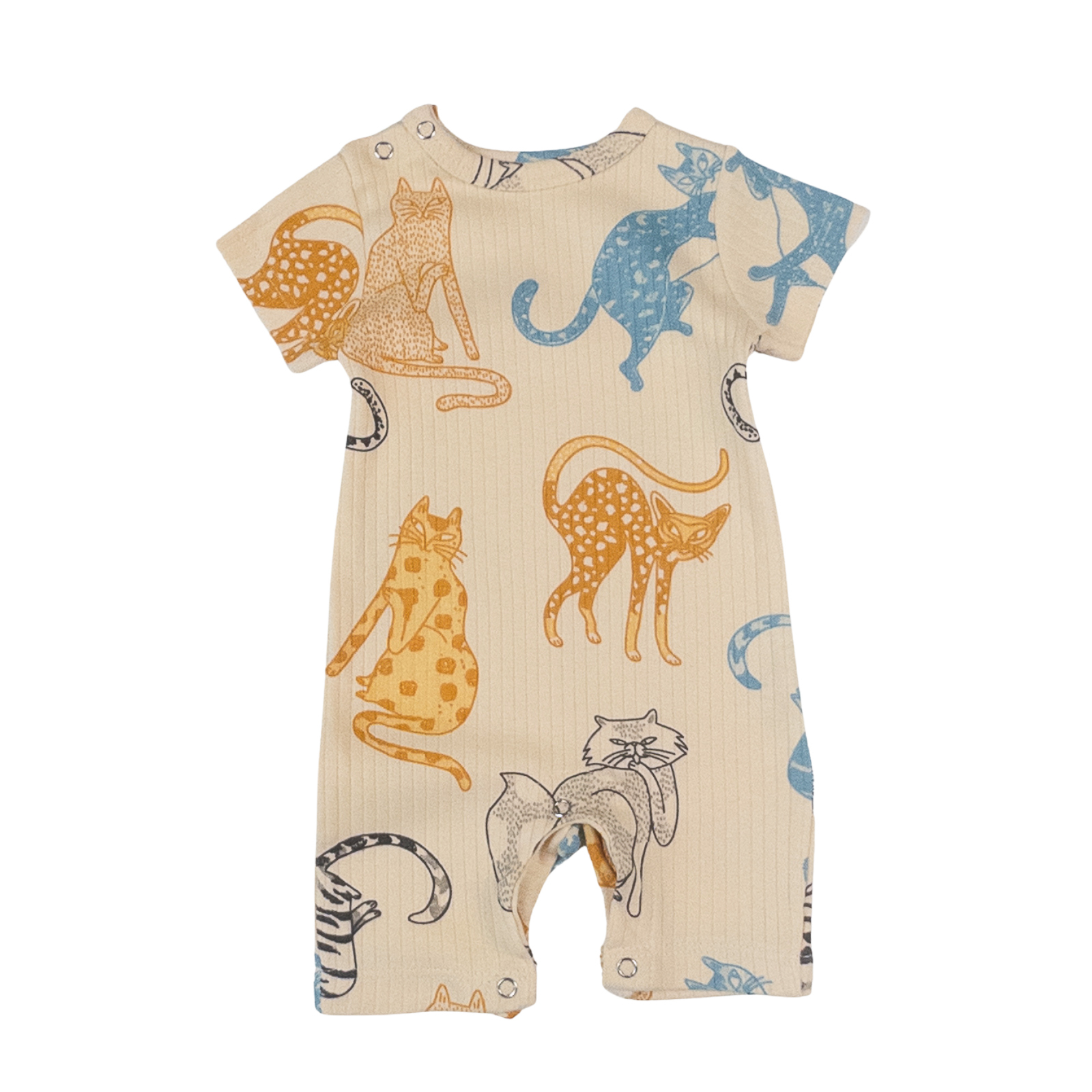 🌿 Confort și stil într-o singură piesă! Salopeta din bumbac 100%, cu mânecă scurtă și croială lejeră, model cu pisicute. Fabricată în Turcia, din 100% Bumbac 💕