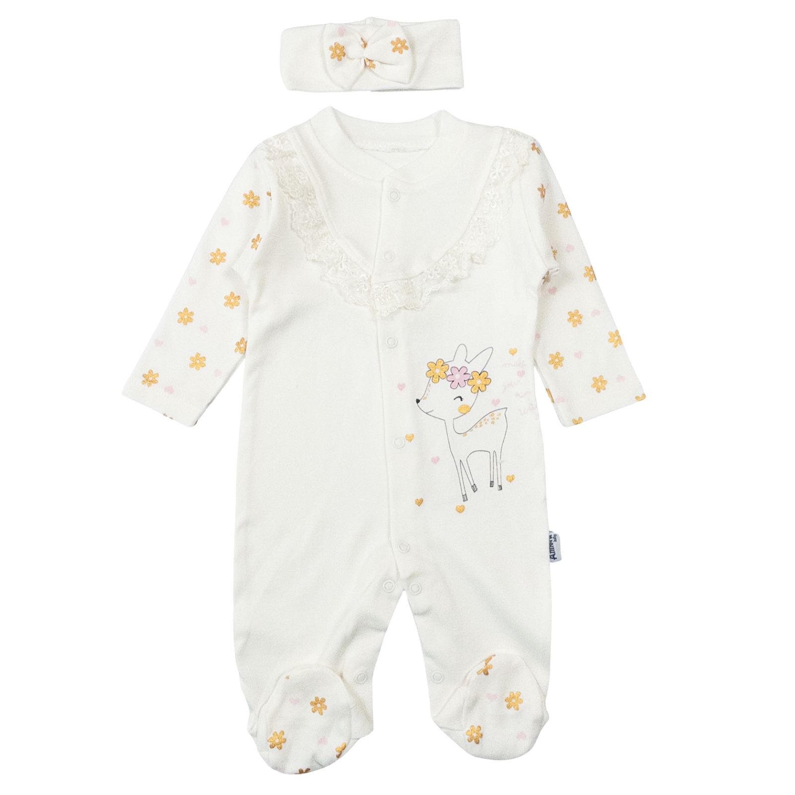 Salopeta si bentita pentru bebelusi, model Bambi, Alb