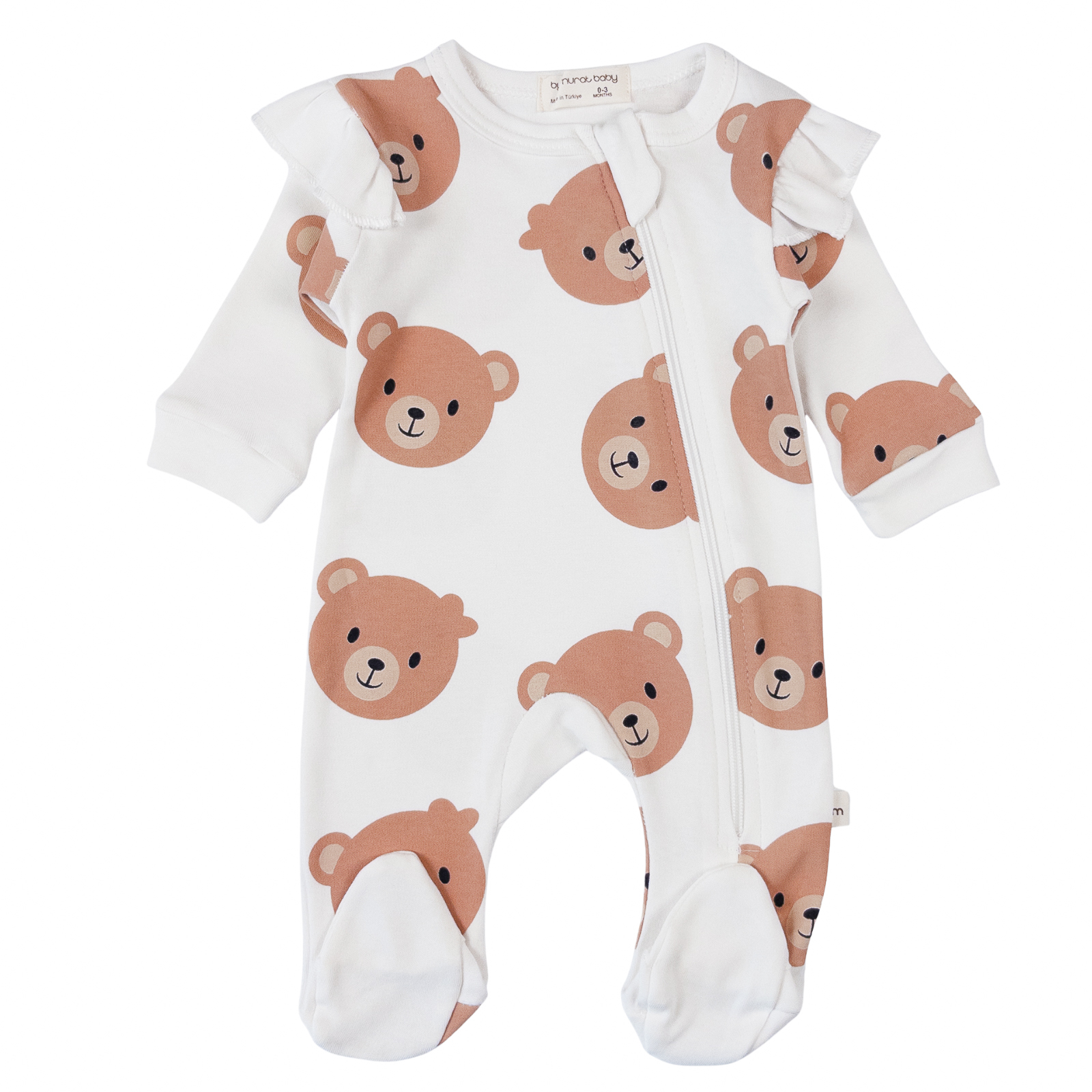 Design Jucăuș și Chic: Fundalul alb imaculat scoate în evidență imprimeul cu ursuleți în nuanțe calde de maro. Volănașele delicate de la umeri adaugă acea notă feminină care transformă o salopetă simplă într-una deosebită.
