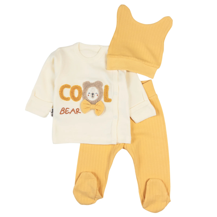 Set 3 piese pentru nou nascuti, Model Ursulet cu fundita
