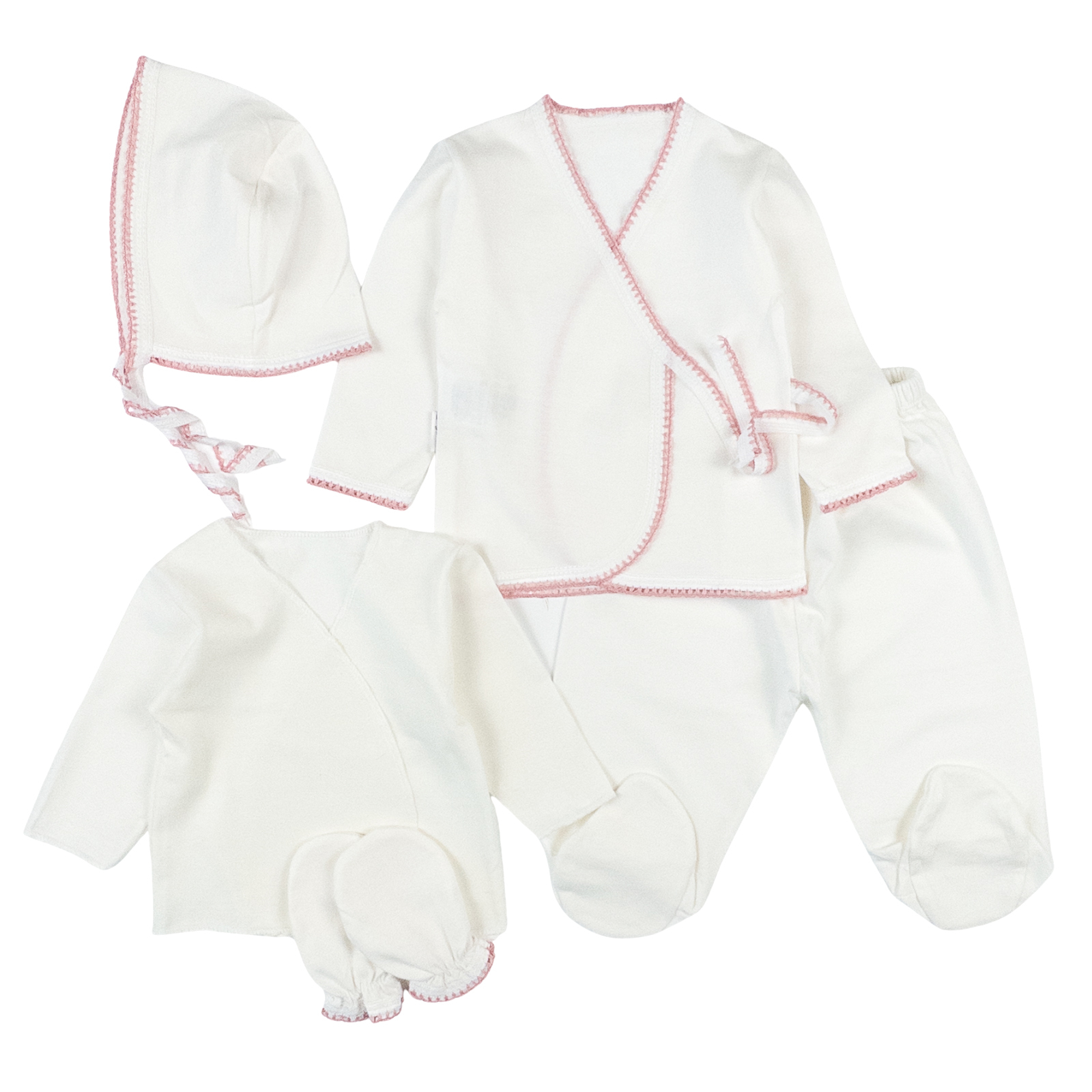 Set pentru nou-născuți – 5 piese, Alb/ Roz