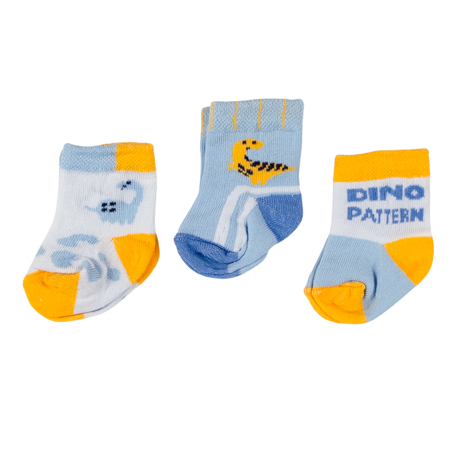 Set 3 perechi sosete bebelusi, 0-6 luni, dino