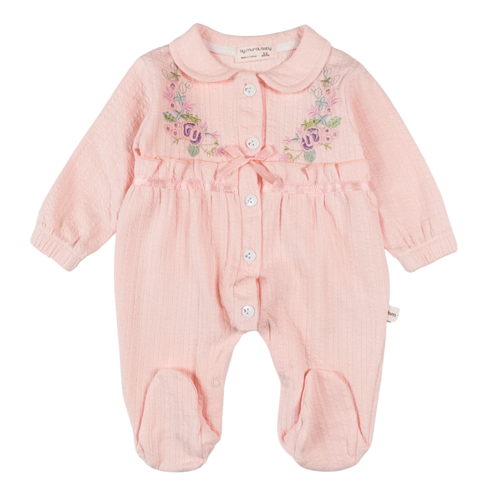 Salopeta pentru bebelusi si nou nascuti, model Floricele Brodate