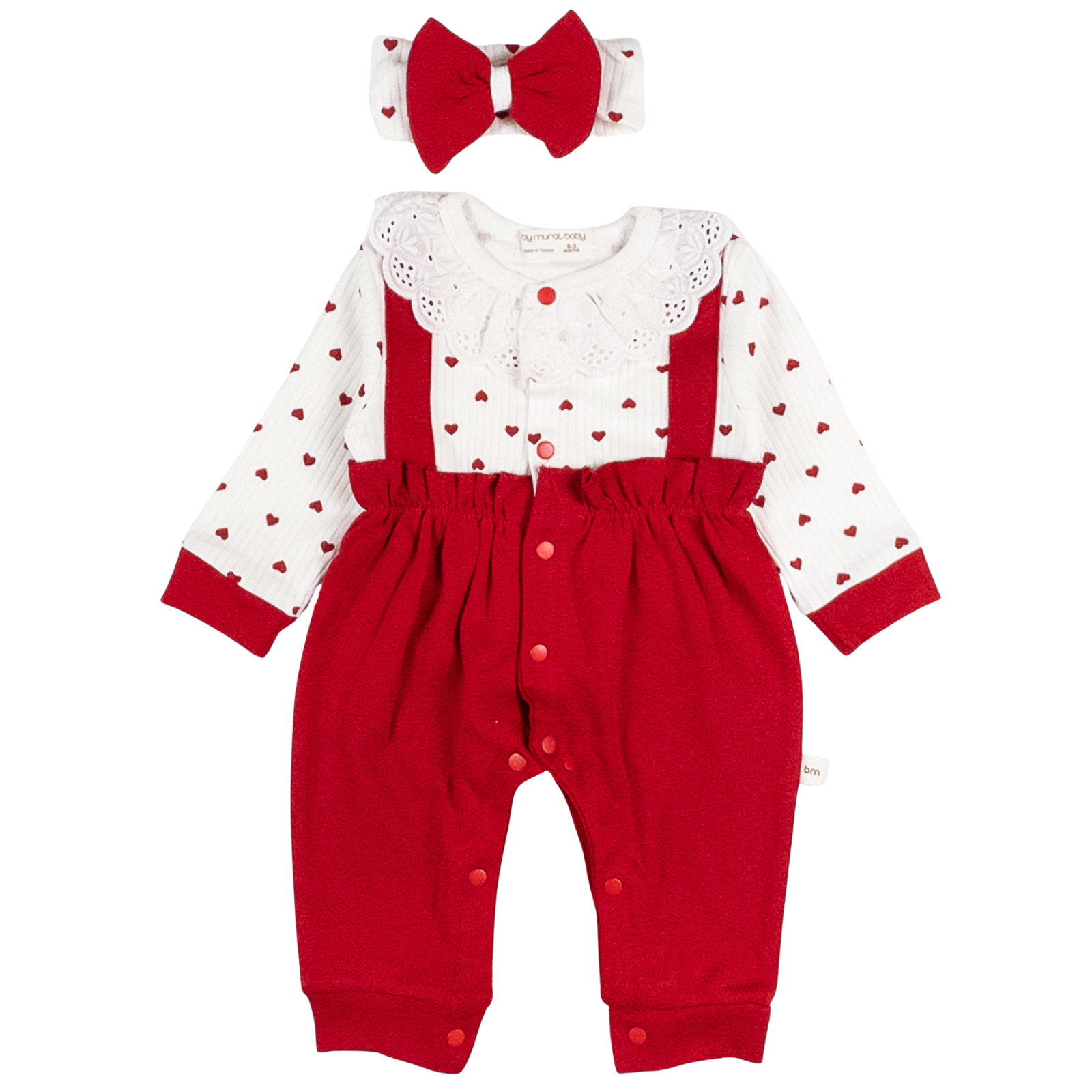 Salopeta si bentita pentru bebelusi, model cu Dantela si inimioare