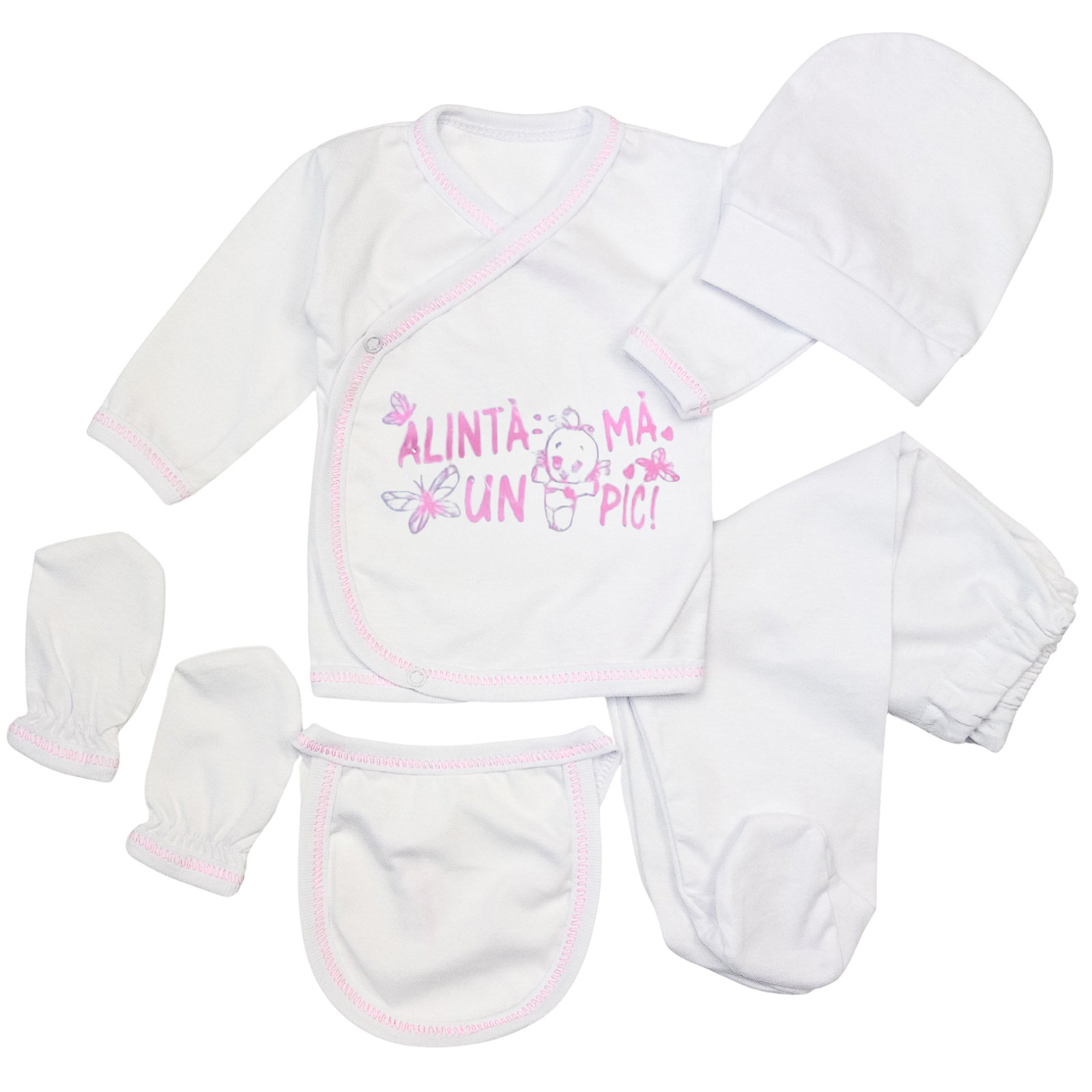 Set pentru nou-născuți – 5 piese, Alb/ Roz