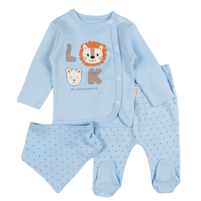 Set adorabil, perfect pentru primele zile de viață. Modelul adaugă o notă dulce, transformând fiecare moment într-o amintire prețioasă.