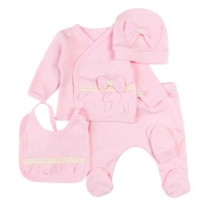 Set 5 piese pentru Nou Nascuti fetite, Model Fundite, Roz