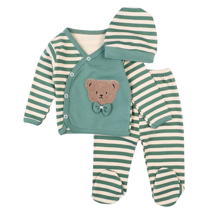 Set pentru nou-născuți – 3 piese, model Ursuleti, vernil