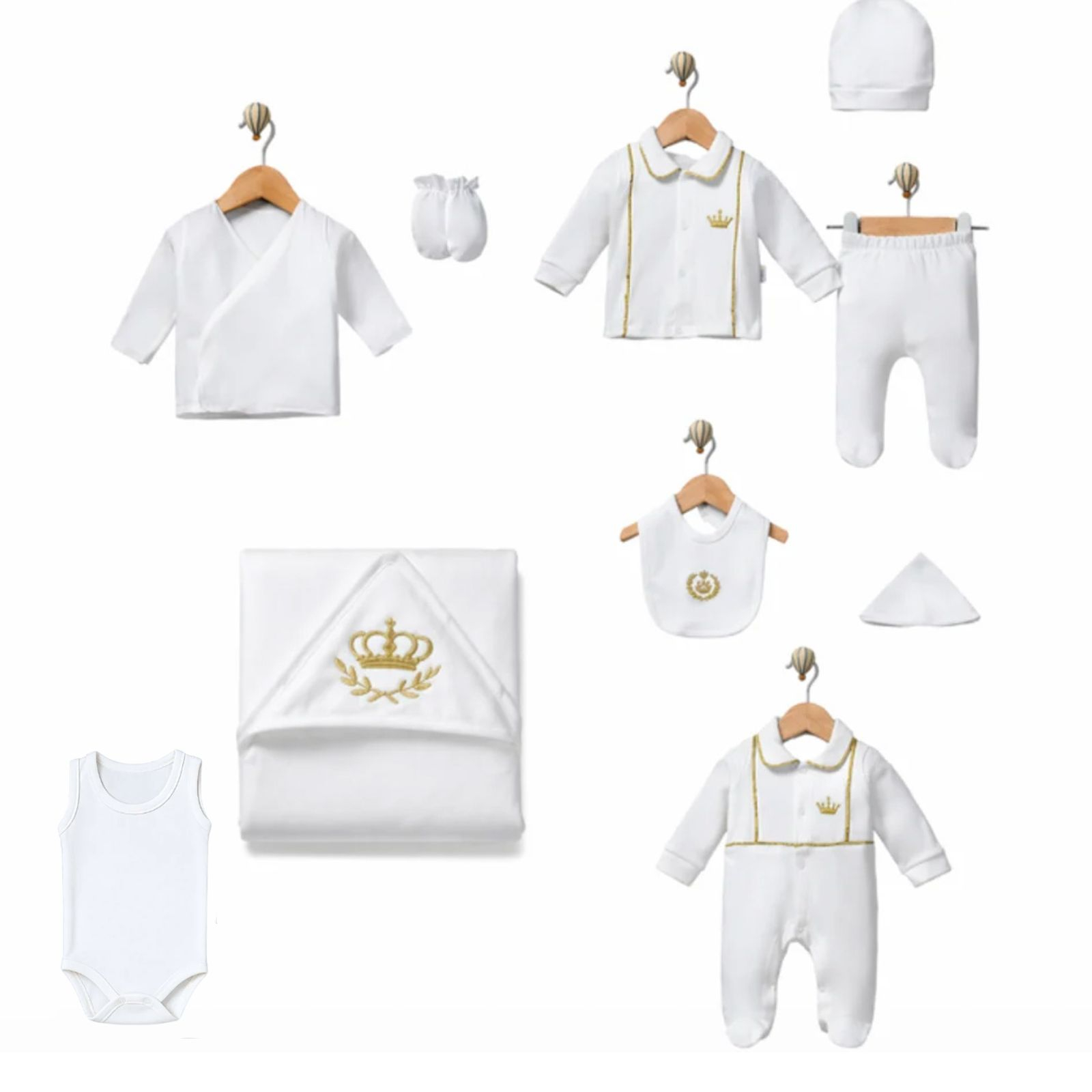 Set 10 Piese Nou-Născut Băieți cu Tema Imperială Alb-Auriu