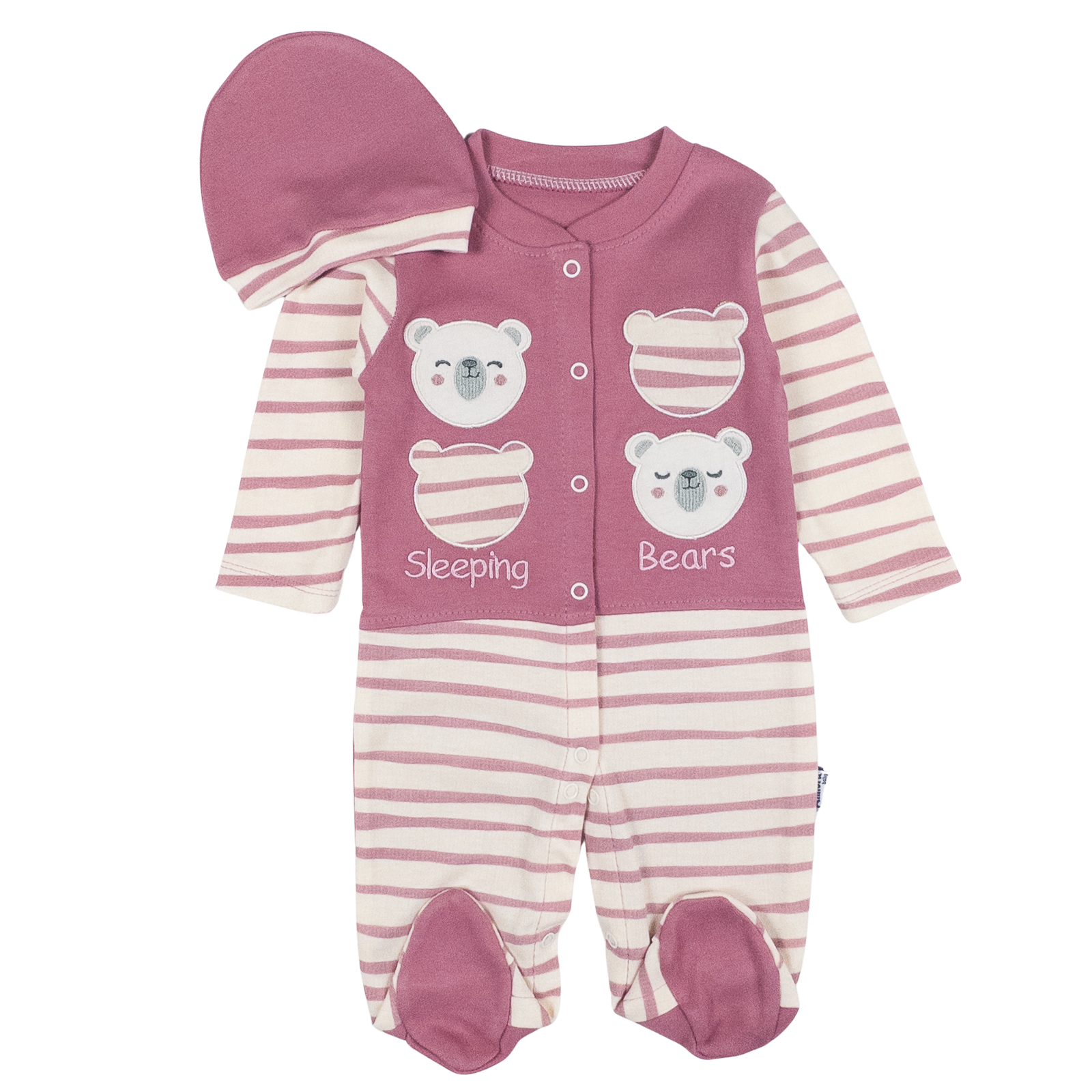 Salopeta si caciulita pentru bebelusi si nou nascuti, model cu Stelute