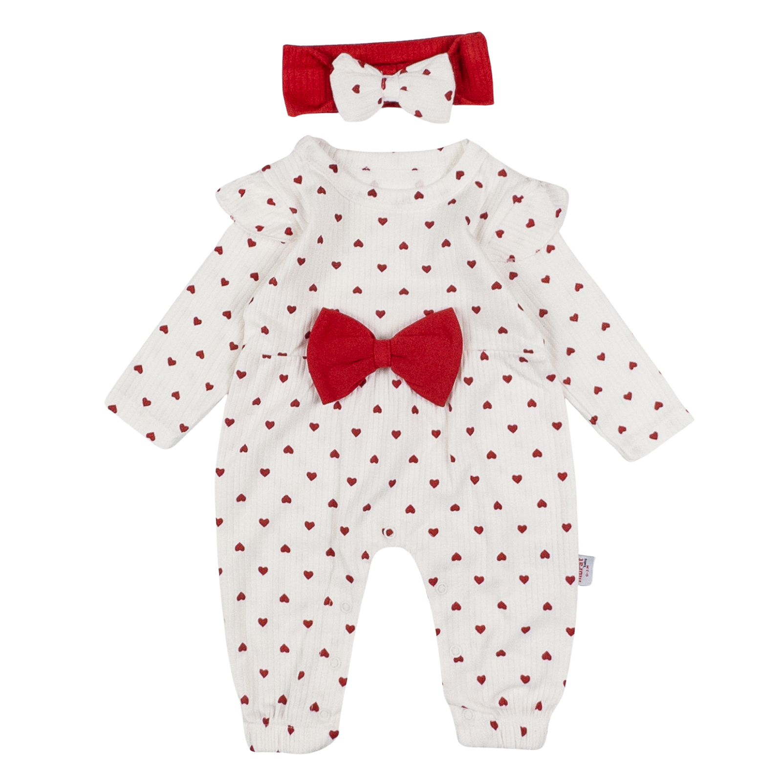 Salopeta pentru bebelusi si nou nascuti, model cu Inimioare