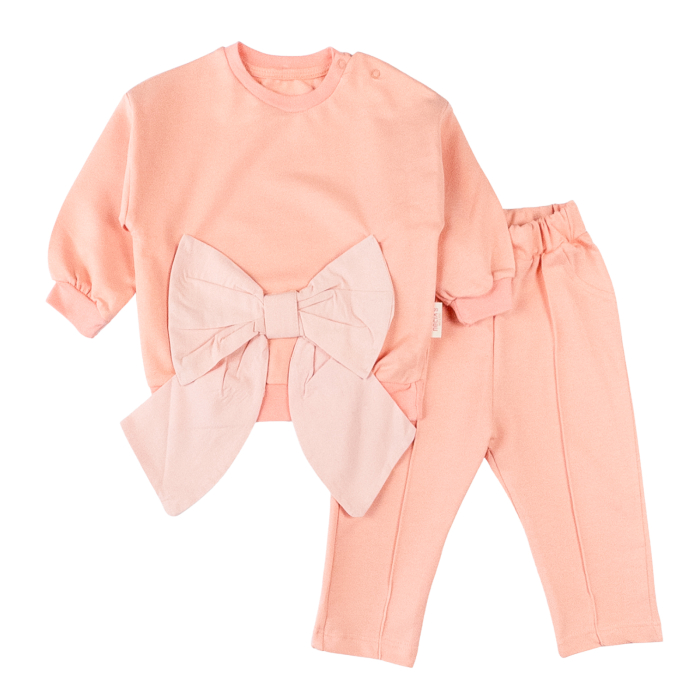 Compleu pentru fetite, model cu Fundă Mare Roz-Piersică