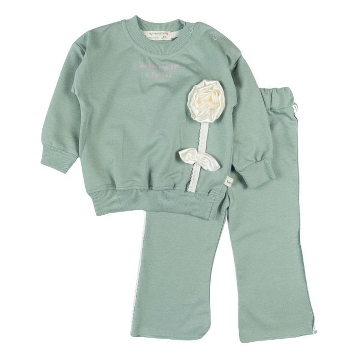 Compleu Fetite Verde Mentă cu Aplicație Trandafir Alb