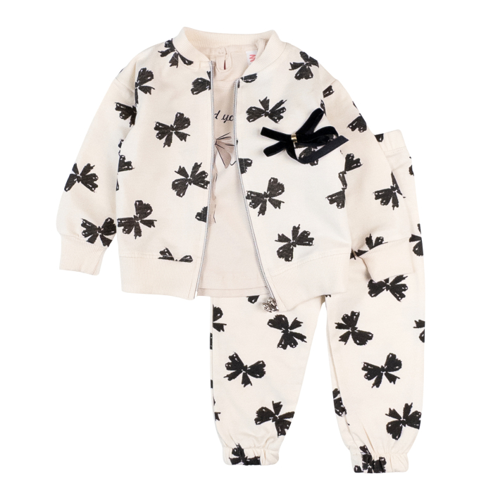 Compleu pentru bebelusi format din Hanorac, bluzita si pantalonasi, model Fundite