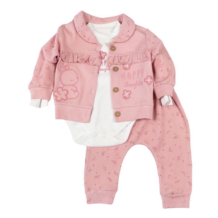 Compleu 3 piese pentru fetite, model Iepuras, roz