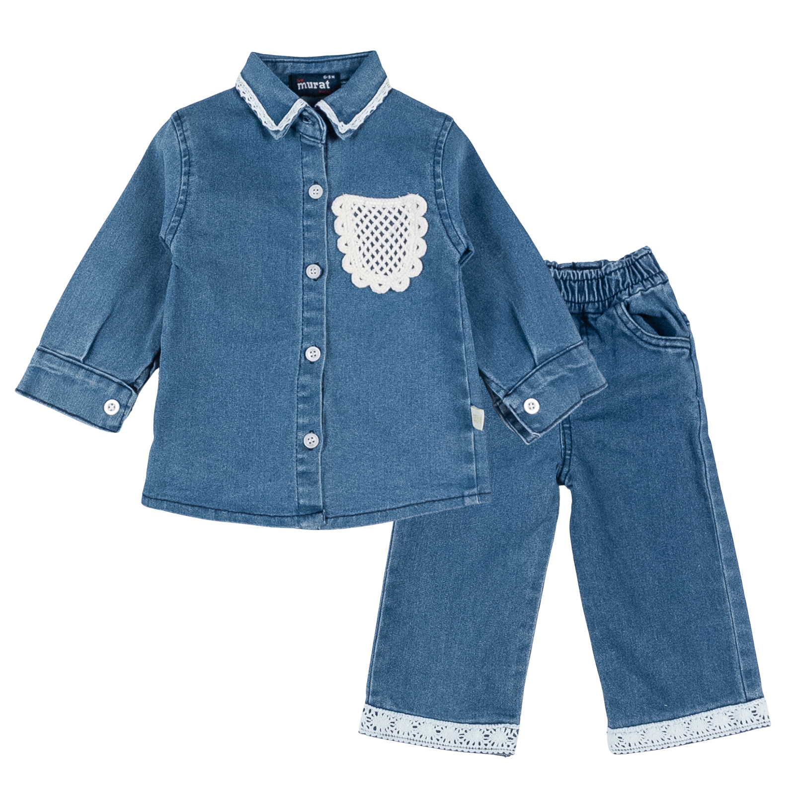 Compleu pentru fetite, camasa si pantalonasi de blug